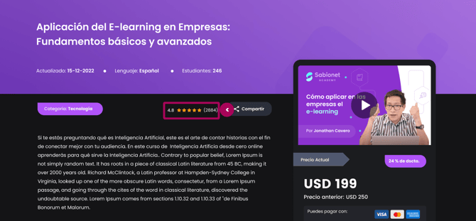 En la landing page de cada uno de tus cursos en donde esté habilitada la funcionalidad se podrá ver de la siguiente manera: