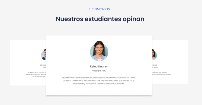 Usa los testimonios de tus clientes en tu sitio web inicial, estos también son parte de la prueba social y les permite aclarar cómo les has ayudado en sus negocios, vida personal u otras razones para confiar en ti y recomendarte.