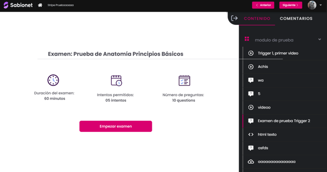 Si no quieres que tus alumnos realicen el examen antes de finalizar el contenido de la lección o del curso completo, te recomendamos que uses el candado para  cambiar las restricciones y crear un modulo para el nuevo examen y así se cumpla la restricción.