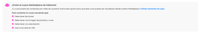 Nota: Para conectar tu curso al marketplace es necesario que: