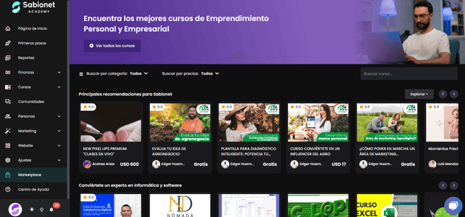 Ahora Sabionet cuenta con un marketplace para ayudarte a vender y comprar cursos online; manteniendo la autonomía de tu negocio y conservando tus derechos de autor. Así que te invitamos a que conectes tus cursos a nuestro Marketplace.